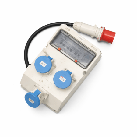 • 63a Three Phase Distribution Box – 1 x 63a 3 Phase In – 3 x 32a 1 Phase Out