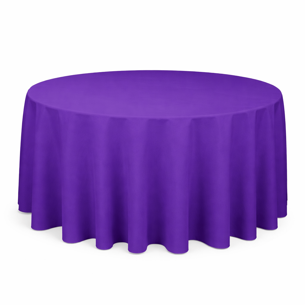 Our purple 108″ round banqueting tablecloth is a bold and elegant choice for weddings, themed events, corporate functions and gala dinners. The rich purple tone adds depth and impact to any event setting, making it ideal for both contemporary and traditional styling.
