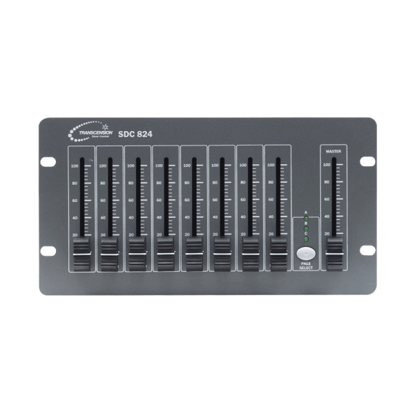 Transcension SDC 824 DMX Controller, 24 channel DMX controller featuring three banks of 8 channels split over 3 pages.